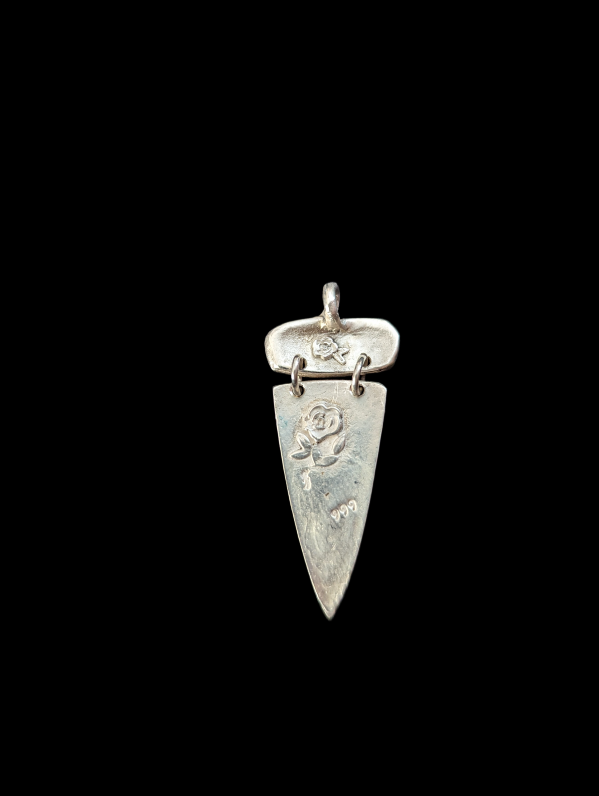 Gorgeous. Very pretty, very eye catching and a lot of fun to wear. About two inches long and 3/4 of an inch wide, pure silver.