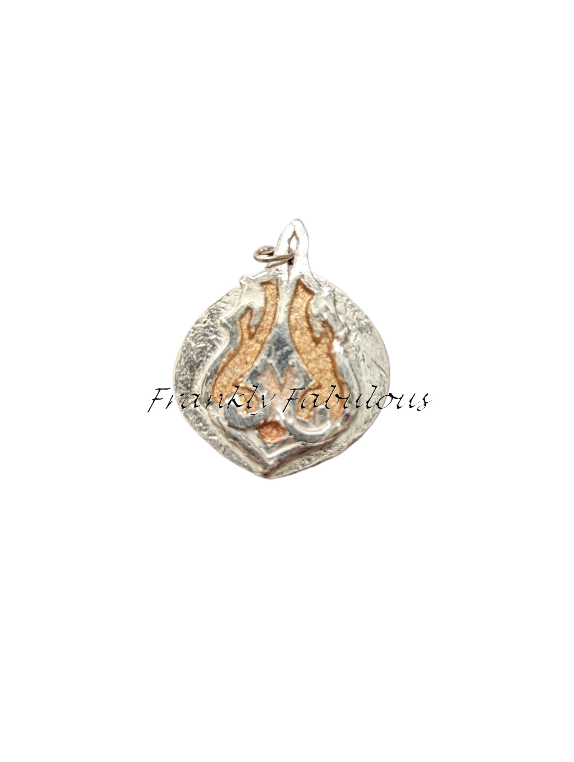 Face it, this one is really different. A face? Curly moustache? Two cats scratching on a post? Fun for sure. Pure silver, painted by hand and sealed with resin.