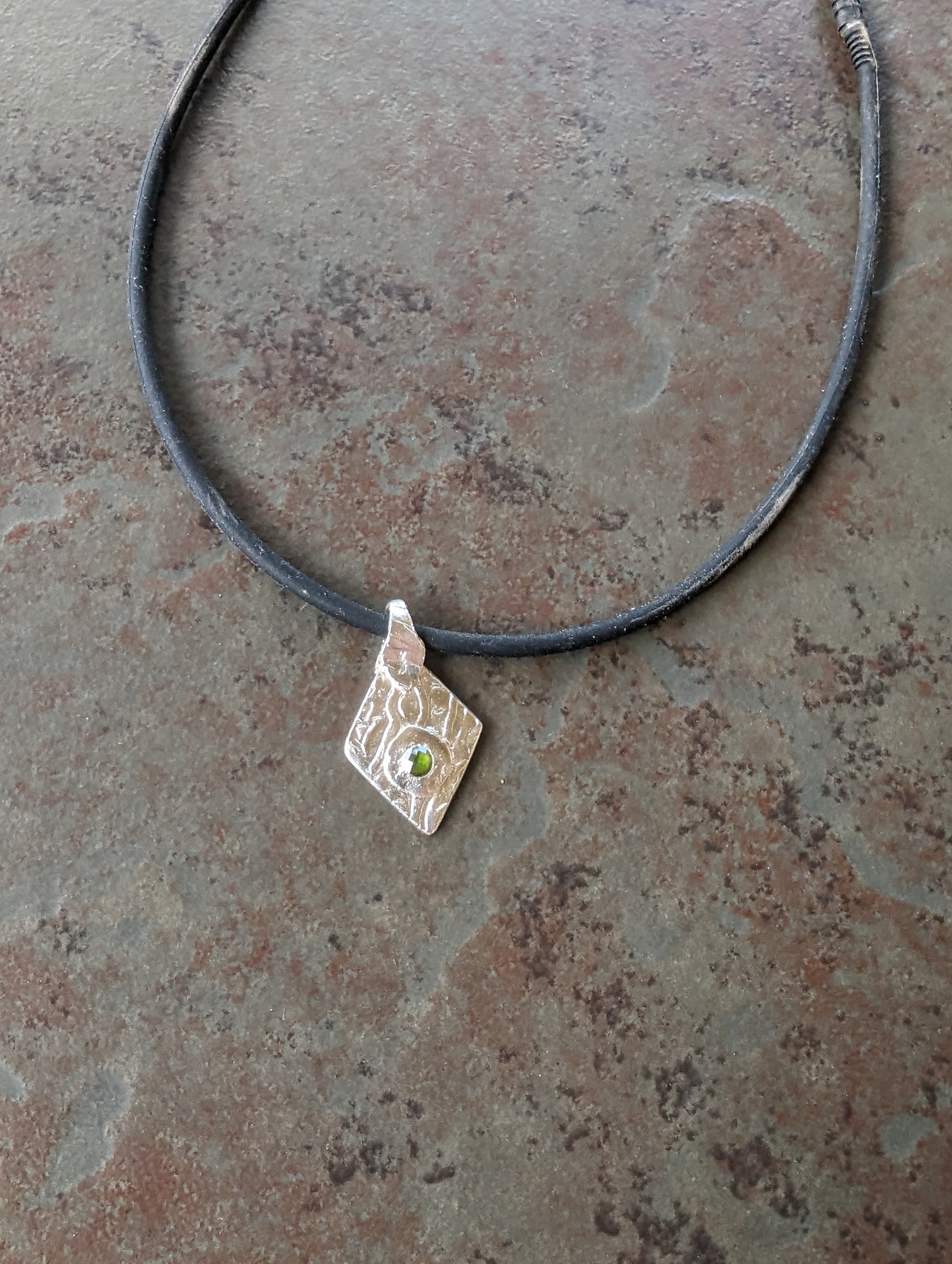 Faceted faux alexandrite glitters in the fine silver setting. So pretty!